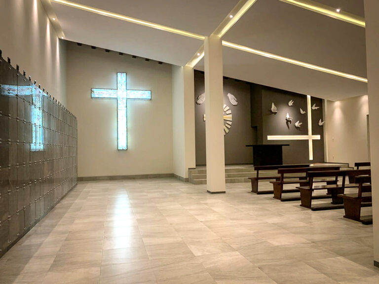 Derecho de uso de nicho a perpetuidad Nichos de mármol para 4 y 8 urnas. Ofrecemos los servicios de ceremonia de depósito de urnas y una placa de acero inoxidable con grabado a nombre de la familia. También disponemos de uso de capilla ecuménica (costo adicional).